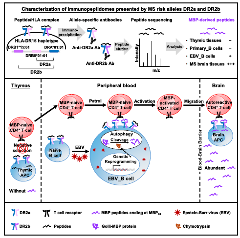 文章題目:EBV infection and HLA-DR15 jointly drive multiple sclerosis by myelin peptide presentation