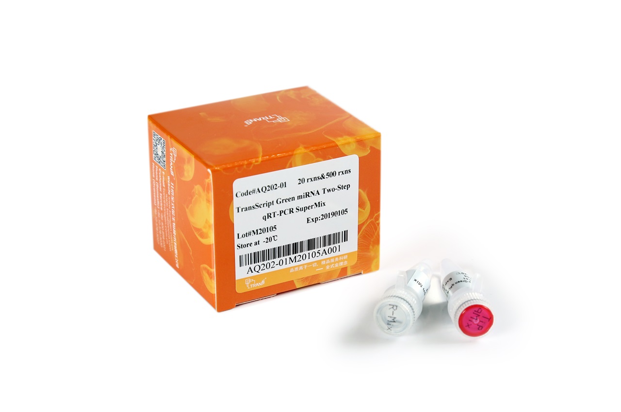 本產品含miRNA檢測的全部試劑。以miRNA為模板,用TransScript? miRNA RT Enzyme Mix(包含加尾酶和反轉錄酶)、2×TS miRNA Reaction Mix高效加尾和合成第一鏈cDNA; miRNA 檢測使用PerfectStart? Green qPCR SuperMix。適用于Total RNA或small RNA等包含miRNA樣品的檢測。