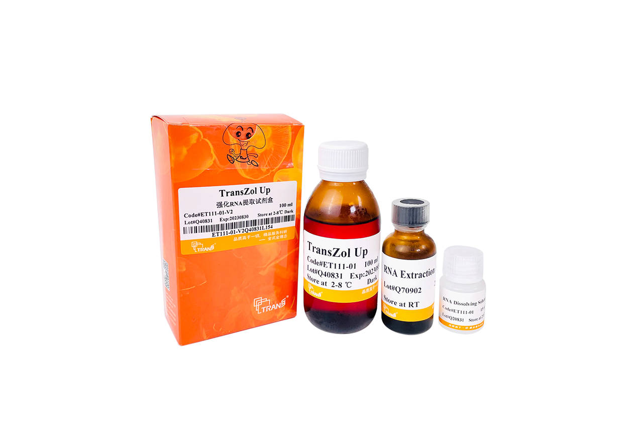 TransZol Up利用異硫氰酸胍裂解細(xì)胞。在樣品的裂解過(guò)程中,TransZol Up可保持RNA完整性,加入RNA Extraction Agent后,溶液分為無(wú)色水相和粉紅色有機(jī)相,RNA在水相,用異丙醇可沉淀回收RNA,有機(jī)相用異丙醇可回收蛋白質(zhì)。TransZol Up與其它總RNA提取試劑相比,裂解能力強(qiáng)、速度快,RNA的提取量與純度更高。適用于快速提取多種組織和細(xì)胞中的總RNA。