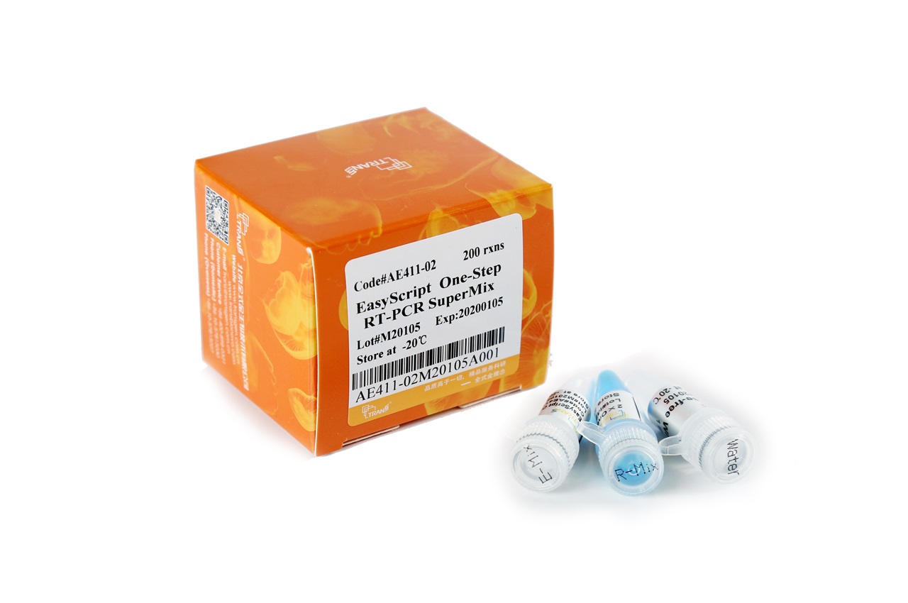 EasyScript? One-Step RT-PCR SuperMix是具有高效合成能力和高擴增效率的一步法RT-PCR試劑盒。本試劑盒以RNA為模板,反向基因特異引物為反轉錄引物合成第一鏈cDNA;然后以合成的cDNA為模板,用正向、反向基因特異引物進行PCR,在同一反應體系中一步完成從反轉錄到PCR的全部反應。擴增產物可直接點樣電泳。