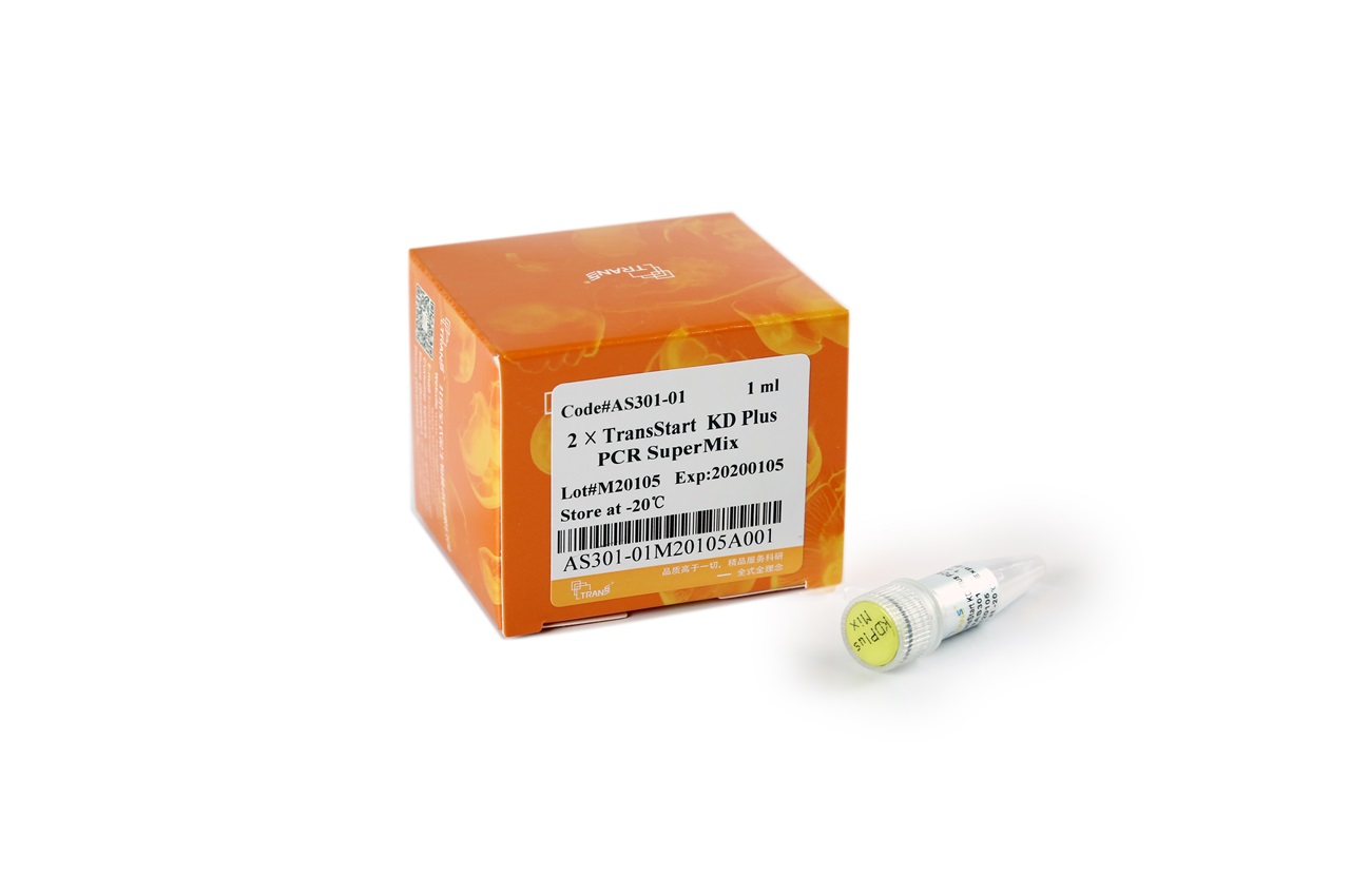 本產品含TransStart? KD Plus DNA Polymerase、dNTPs和優(yōu)化的反應緩沖液,濃度為2×,擴增能力強,擴增速度快,具有超高保真性、高特異性。DNA擴增時,只需加入模板、引物和水,使SuperMix溶液的濃度為1×即可進行反應。擴增產物為平端,可直接克隆于pEASY?-Blunt系列載體中。