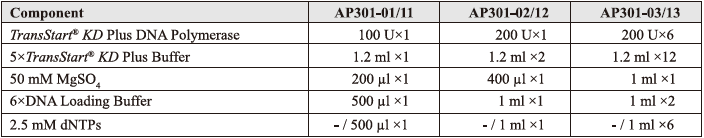 TransStart? KD Plus DNA Polymerase是一種經(jīng)過基因改造的高保真DNA聚合酶。該酶擴(kuò)增能力優(yōu)于普通Pfu酶,擴(kuò)增速度快(1 kb/min,與Taq酶相當(dāng))。由于該酶具有極強(qiáng)的3’→5’外切酶活性,與普通Pfu酶相比,保真性更高,是EasyTaq? DNA Polymerase的108倍。