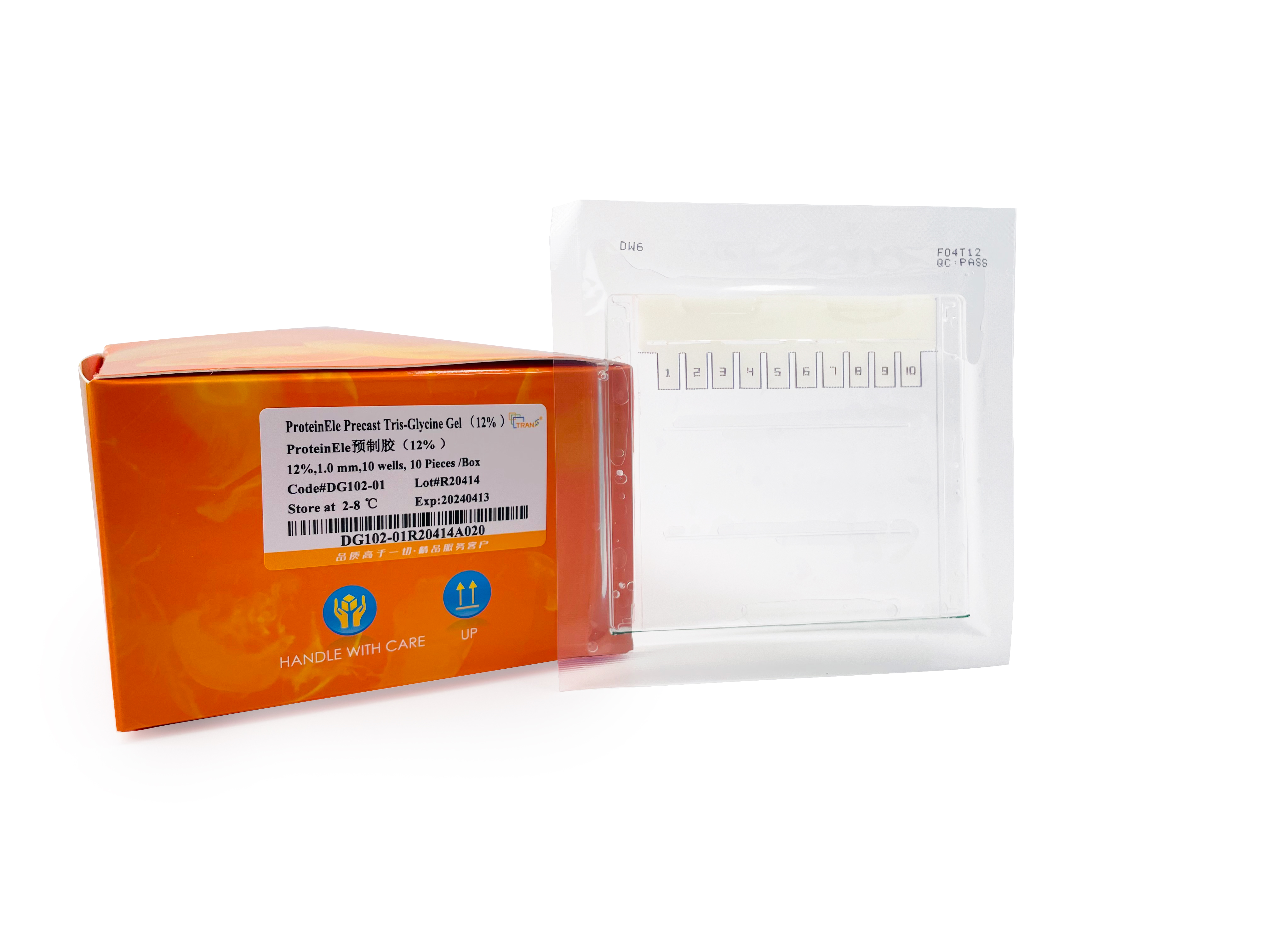 ProteinEle? Precast Tris-Glycine Gel為12%均一濃度聚丙烯酰胺預制膠,用pH中性緩沖液制備,分辨率高,穩(wěn)定性好。本產(chǎn)品使用經(jīng)典的Tris-Glycine電泳緩沖液,適用于天然蛋白和變性蛋白的電泳。本產(chǎn)品與目前廣泛使用的多種小型電泳槽兼容,使用方便,安裝簡單。