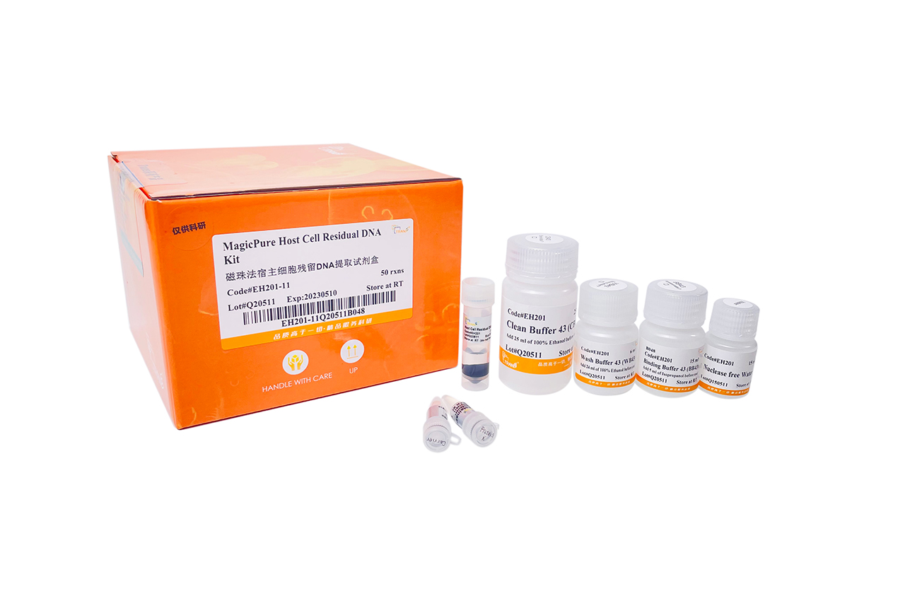 本試劑盒采用獨(dú)特的裂解液釋放微量DNA,利用硅基磁珠特異性吸附并純化宿主細(xì)胞殘留DNA。用于從≤200 μl生物制品樣本中提取宿主細(xì)胞(CHO、Vero、NS0、MDCK等)的微量DNA片段。所得產(chǎn)物純度高,適合PCR,RT-PCR,qPCR和qRT-PCR等實(shí)驗(yàn)。本試劑盒也可搭配高通量磁棒式核酸提取儀。