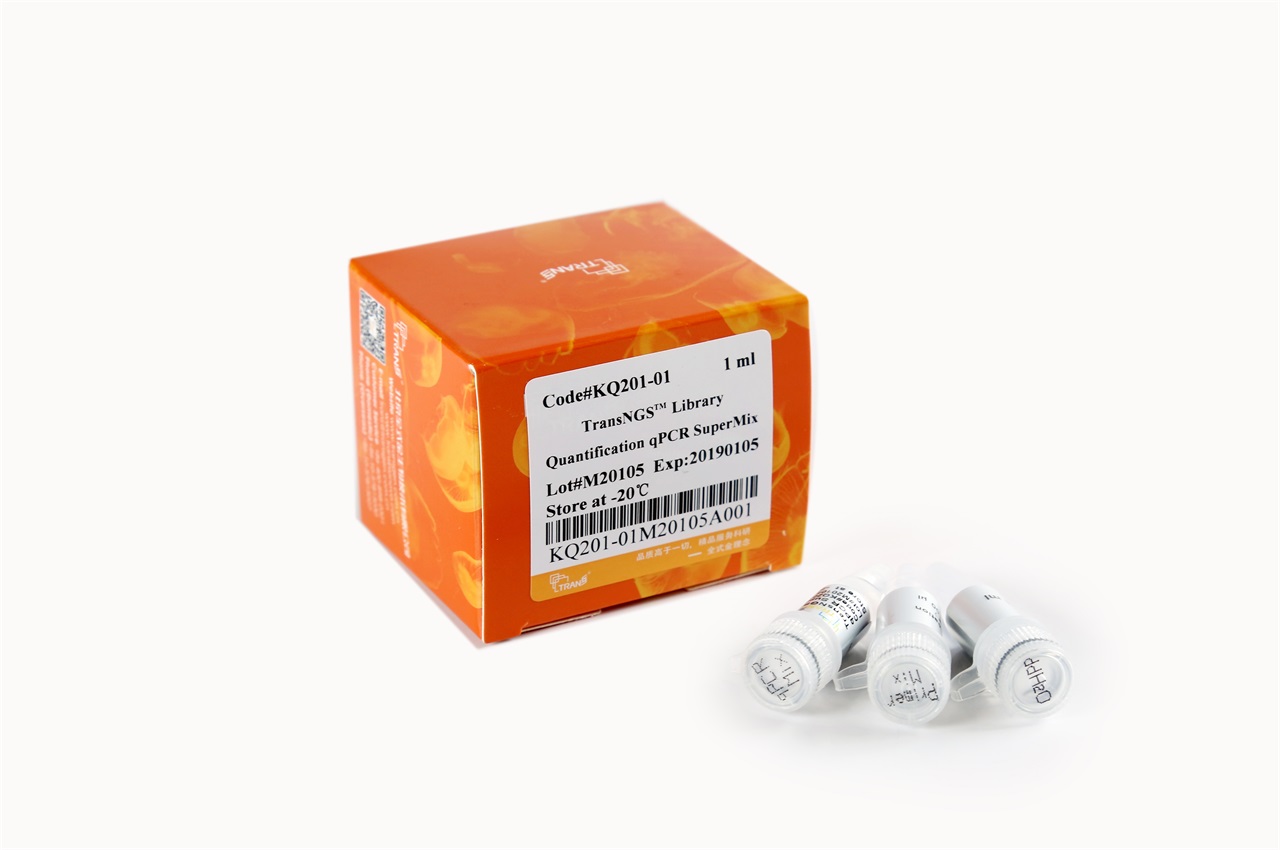 本產(chǎn)品包含全封閉法TransStart? TipTaq新型熱啟動(dòng)酶 (利用三種蛋白封閉模板和引物,利用特殊的化學(xué)物質(zhì)和DNA聚合酶結(jié)合,封閉DNA聚合酶活性)、新型EvaGreen熒光染料、dNTPs、PCR增強(qiáng)劑、PCR穩(wěn)定劑以及針對(duì)文庫定量特別優(yōu)化的反應(yīng)緩沖液,具有靈敏度高、特異性強(qiáng)、擴(kuò)增能力強(qiáng)、適用范圍廣、穩(wěn)定性好等特點(diǎn),適用于不同GC含量以及長片段文庫的定量檢測,非常適用于二代測序文庫的qPCR法絕對(duì)定量。本產(chǎn)品濃度為2×,使用時(shí)只需加入模板、引物、Passive Reference Dye (根據(jù)qPCR儀器選擇) 和水,使其工作濃度為1×,即可進(jìn)行反應(yīng)。